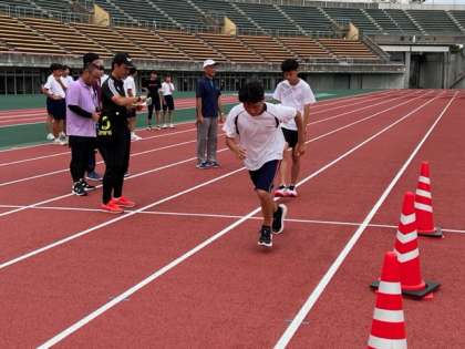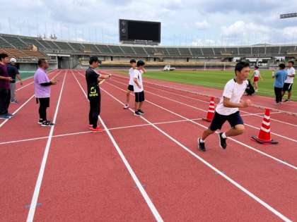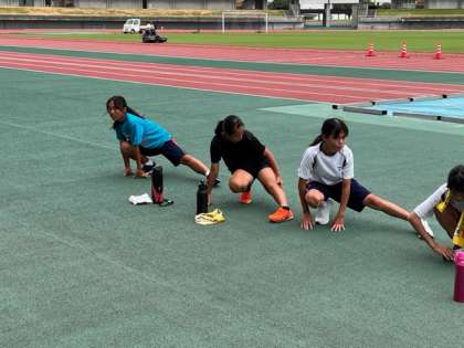 駅伝部は県総合運動公園陸上競技場で試走を行いました。