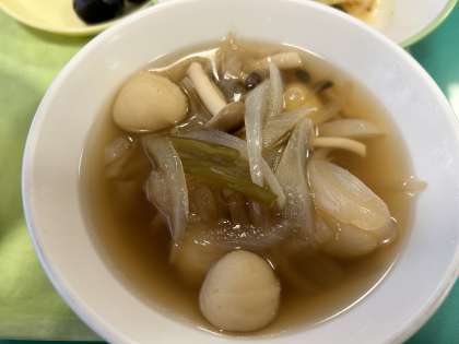茎わかめスープは、つみれたっぷりでお腹いっぱいです。