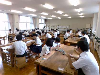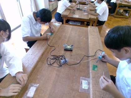 1組は、はんだづけの練習を行いました。火傷に十分気をつけないといけません。