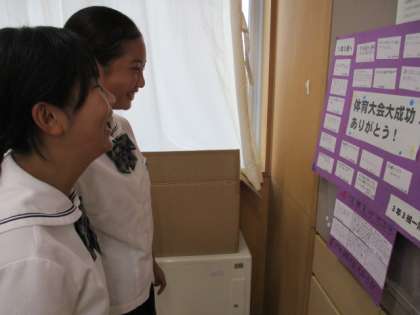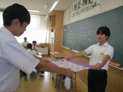 先日行われた体育大会での感謝の気持ちをメッセージにし、3年生から1、2年生に贈りました。