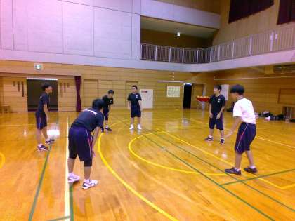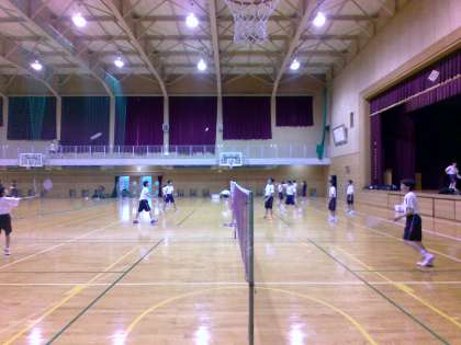 体育館では、男女バレーボール部、男女バドミントン部が活動していました。