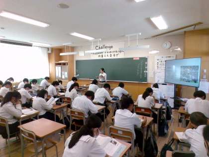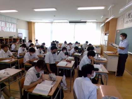 1、2組とも道徳の授業です。2組は教育実習生の授業です。
