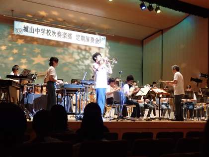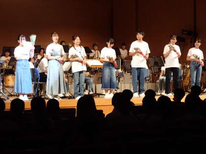 9/17に婦中ふれあい館で吹奏楽部の定期演奏会を行いました。多数のご来場ありがとうございました。おかげさまで部員一同張り切って演奏し、楽しい演奏会になりました。開催に当たり、ご協力いただいたふれあい館の皆様、照明スタッフの皆様、保護者の皆様、そして、卒業生の皆様、生徒会の皆様、本当にありがとうございました。