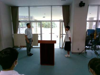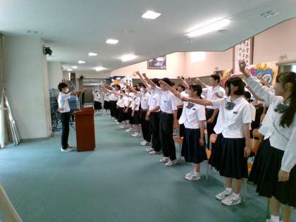 来週から始まる「社会に学ぶ『14歳の挑戦』」に向けての学年集会を行いました。校長先生からの激励の言葉、生徒代表の挨拶がありました。集会の最後には、みんなで気合を入れました。頑張るぞ!おー!