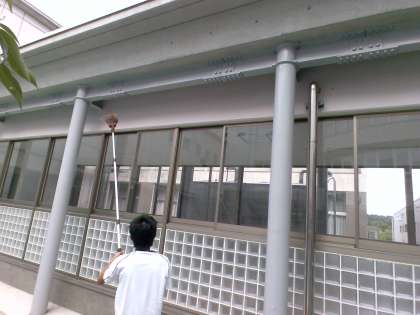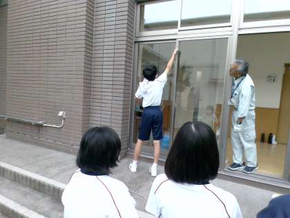 2年生は14歳の挑戦中ですが、本日の残留生徒が用務員さんに指導を受けながら、校舎の清掃活動に励んでいます。