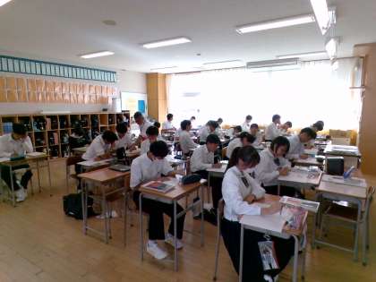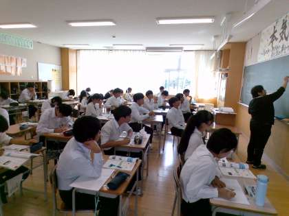 1組理科、2組保健体育、3組理科の様子です。2組は、サッカーの授業です。