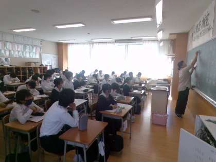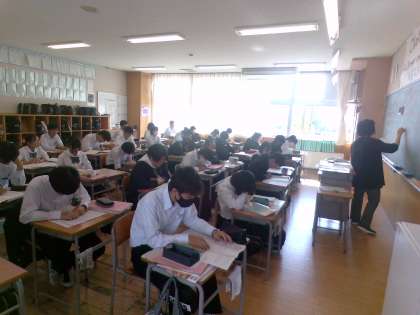 1組国語、2組英語の様子です。どちらのクラスも中間考査のテスト直しをしていました。