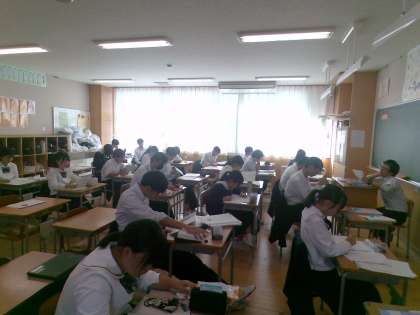 1組社会、2組音楽、3組英語の様子です。社会はテスト直し、音楽は合唱コンクールに向けての練習、英語はクロムブックを使って課題を提出しようとしていました。