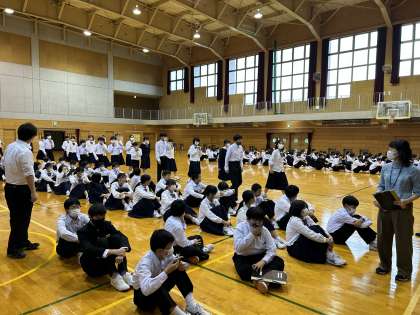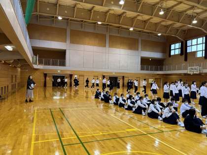 雨が降っていたので体育館への避難となりました。ほとんどの生徒は真剣に取り組むことができました。