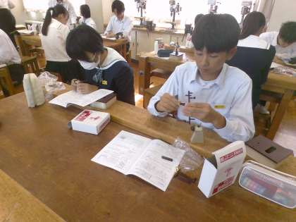 オルゴール人形の製作をしています。みんなで協力して製作しています。
