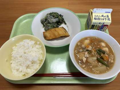 熱々の厚揚げとじゃがいも、火傷しないように食べましょう。