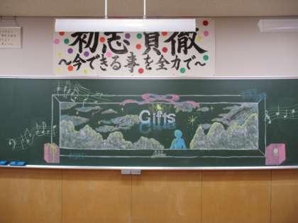合唱コンクールに向けて、3年生各クラスの思いが込められた黒板です。クラスで心を一つに頑張ろう。