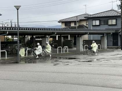 急に寒くなりました。コートやネックウォーマー、手袋など寒さ対策をしている生徒が多くいました。これからは、雨や雪の日は長靴やブーツを履いて足下を濡らさないようにしましょう。