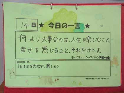 3年生が作成した日めくりカレンダーと今日の一言です。素敵な絵と言葉から元気がもらえます。