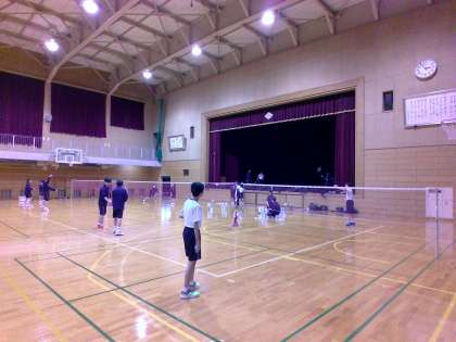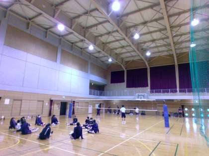 今日は、バレーボール部とバドミントン部が体育館で活動していました。