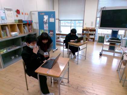 1組の様子です。クロムブックを用いてアンケートに答えていました。