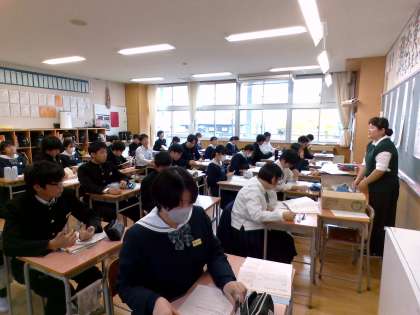1組保健体育、2組社会、3組国語の様子です。