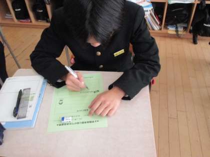 2学期の期末考査に向けての決意表明を記入し、掲示しました。「有言実行」で頑張りましょう。