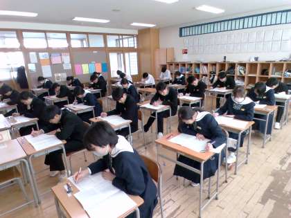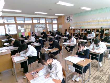1限目、国語のテストの様子です。3年生は、今日からの期末考査、市学力調査とテストが続きますが、頑張れ受検生!