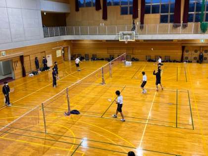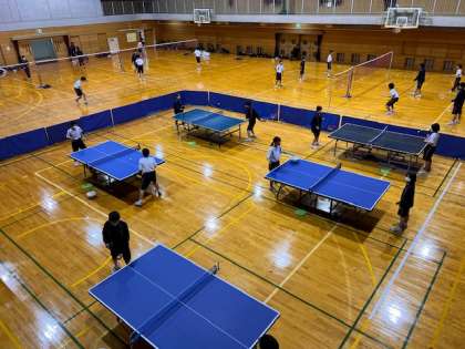 体育館では卓球部とバドミントン部がトレーニングしています。