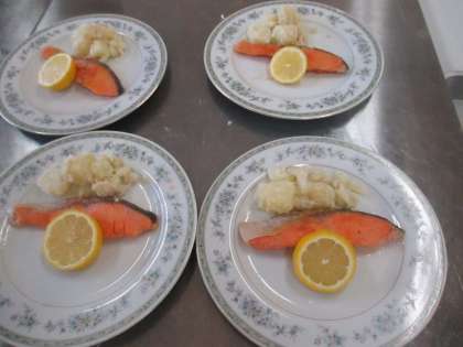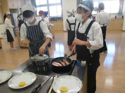 1年生は、さけのムニエルの調理実習を行いました。班ごとに役割分担し、どのクラスも手際よく進めることができました。今度は、家庭でも作ってみてくださいね!