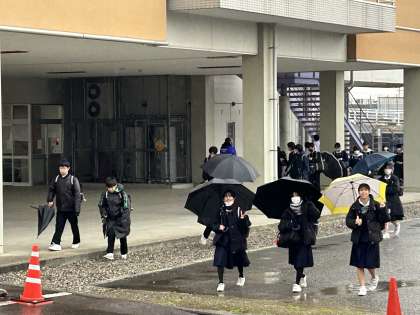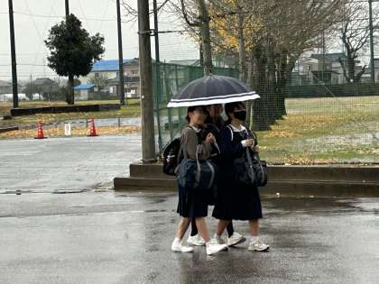 雨が降ってきました。傘を持っていてもささない、合羽を着ない生徒が多くいます。もちろん制服は濡れています。