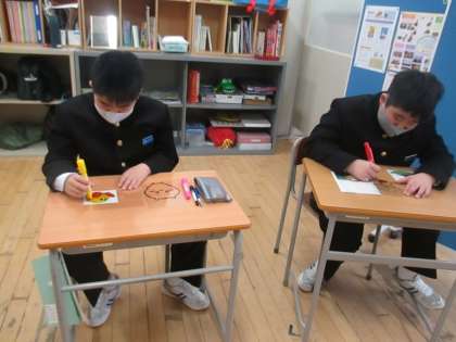 家科科の授業では、プラ板製のオリジナルキーホルダーを作成しています。