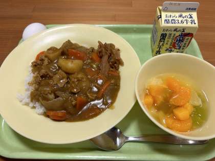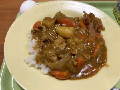 着替えを済ませ食卓に行くと、カレーライスが出てきた。思わず「明日の給食カレー」とつぶやいてしまいました。おわり。