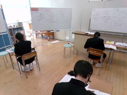 2組の様子です。1年生は、作図の演習問題、3年は三平方の定理の利用を学んでいます。