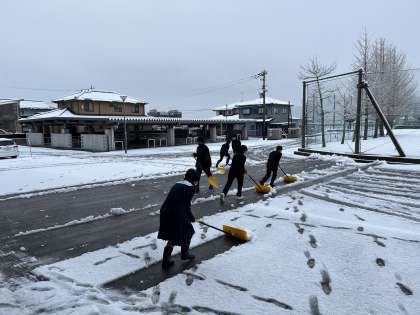 今日の除雪ボランティアは3年2組でした。やりがいのある雪の量ですね。ありがとうございました。