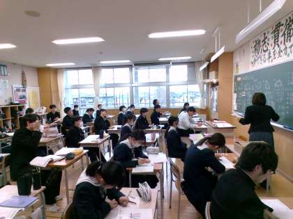 1組社会、3組数学の授業の様子です。教科書の内容も終わりに近づいています。頑張れ、受検生!