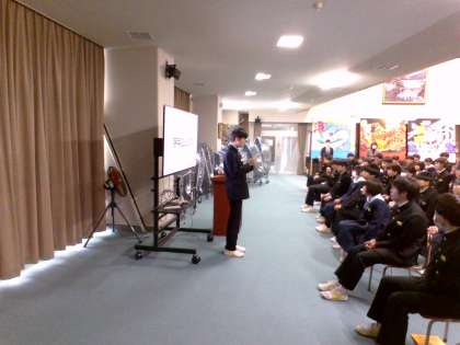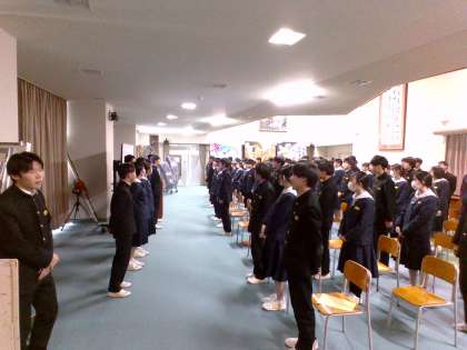 明日の終業式に向けて、応援団が音頭をとって校歌の練習をしました。