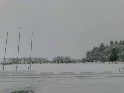 学校のグラウンドの様子です。現在、富山地方気象台によると大雪警報が継続して出ています。今後の情報に注視し、不要不急の外出は控えましょう。