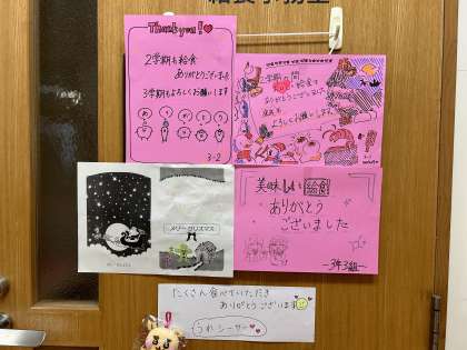 昨日の給食最終日に3年生から調理員のみなさんにメッセージを送りました。