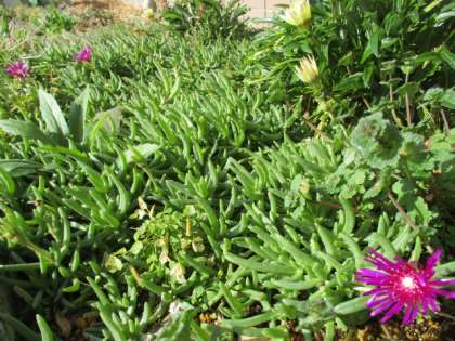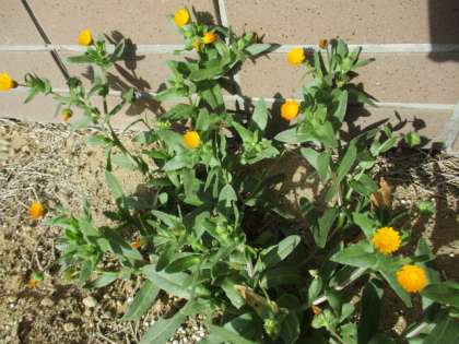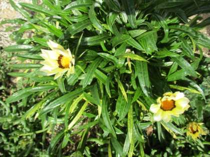 城山中学校の玄関横の花壇に、白、黄、ピンク色の花が咲いていました。1月だというのに、外の寒さにも負けずに咲いている花から元気をもらいました。