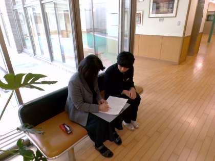 始業式に行う意見発表の内容を確認してもらっています。当日は頑張ってください。