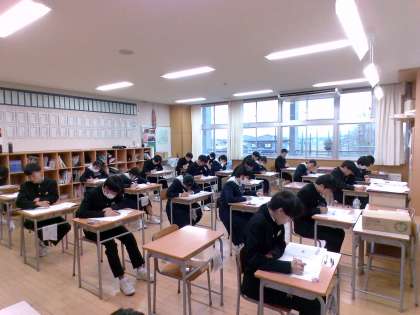 受検に向けた確認テストを行っています。冬休みに頑張った成果がでるといいですね。