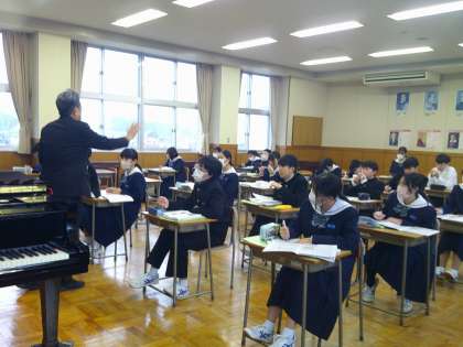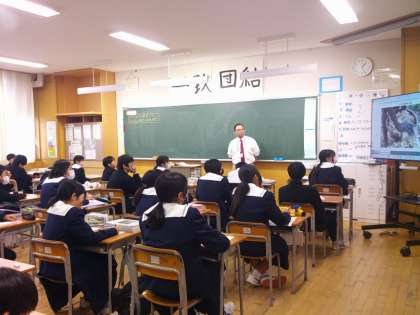 5限の授業の様子です。1〜3限目にテストがありました。集中して授業に取り組んでいます。1組社会、2組音楽、3組数学の様子です。