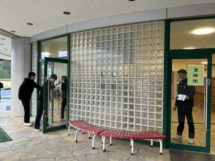 今日の除雪&清掃ボランティアは3年1組でした。玄関ガラスや事務室のガラス戸、下足棚の上など綺麗にしてくれました。