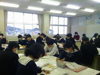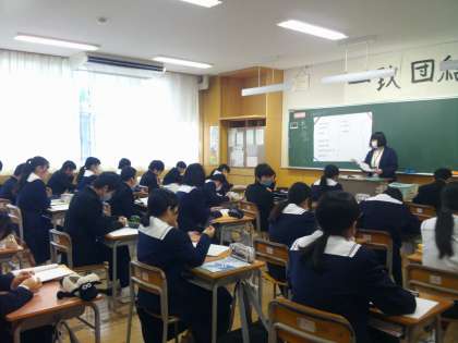 1組は英語、2組は家庭科、3組は理科です。英語は文法について、先生の説明を聞いていました。家庭科は献立について学習していました。理科は重さの実験を行っていました。
