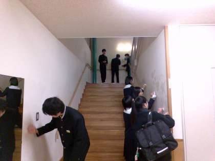 今日は、3年2組が除雪当番です。雪がないので校内清掃に取り組んでいます。