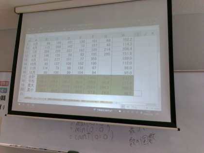 表計算ソフトの5大関数、合計、平均、数の個数、最大、最小の関数を使って課題に取り組んでいます。