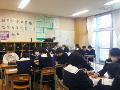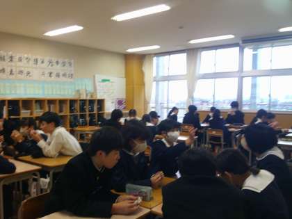 学活の時間に各クラスでグループエンカウンターを行いました。自分の知っている情報を相手に正しく伝え、班員同士で課題を解決する活動をしました。相手の話をしっかり聞いて課題に取り組んでいました。