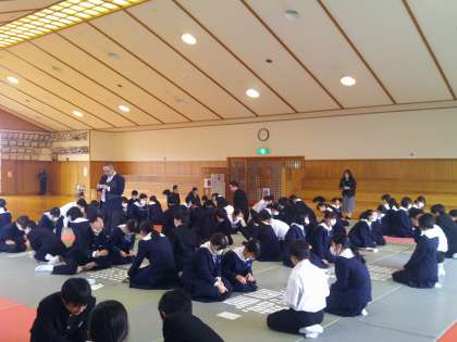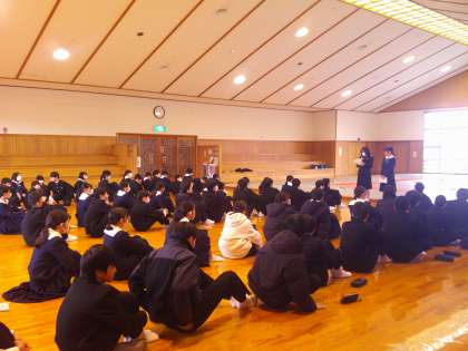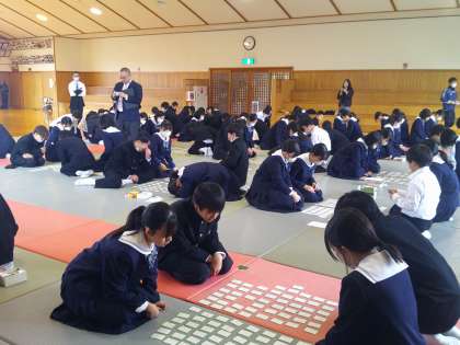 5、6時間目に武道館で百人一首大会を行いました。国語の授業で練習をした以外に、大会の前に自主練習をした生徒もいたようです。とても盛り上がりました。