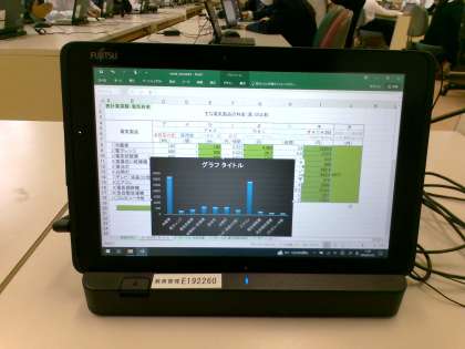 2組の様子です。表計算ソフトを使って電気料金の計算をし、グラフを作成しました。