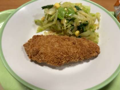 ポケットチーズをフライにのせて、なんちゃてささみチーズフライにしていただきました。