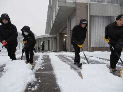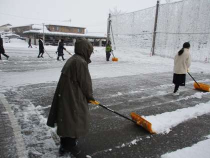 3年3組が除雪当番でした。雪が降る中、一生懸命、除雪に励んでいました。これで3年生の割り当ては終わりですが、これからも、みんなのためにボランティアをしていきましょう。