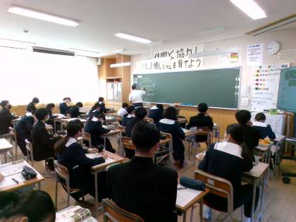 1組音楽、2組社会、3組理科の様子です。