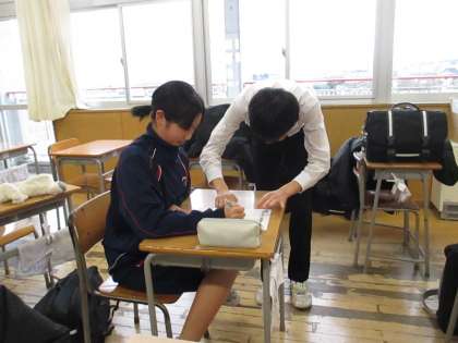 3年生が卒業に向け城山中学校への感謝を伝える企画の一環として、3年1組の生徒が1・2年生へ質問教室を行いました。