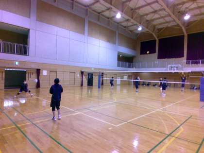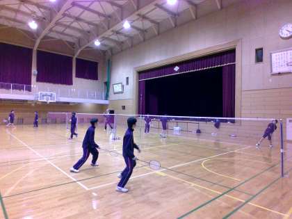 体育館では、バドミントン部とバレーボール部が活動していました。